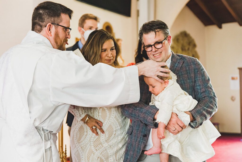 And if the lighting in the church is tricky, let your photographer know so they can plan for it. I recommend these conversations to happen as early as possible in your planning journey because it also lets your photographer reserve enough time in their calendar for both the ceremony and the reception (if you’re having one), and any additional photo sets and photography ideas you and they have. If your photographer is experienced in baptisms they likely will be able to give some really good ideas and tips for how to structure your ceremony, event, photos, and the overall timeline and layout.